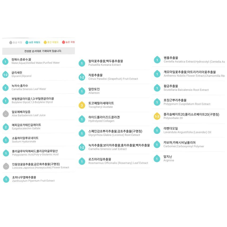 아래는 웰빙 녹차스킨을 화장품 어플 '화해'에서 검색했을 때 나오는 성분 정보이다. 화장품을 사실 때는 '화해'에서 해당 화장품을 미리 검색해보고, 성분을 파악하는 것도 추천할만한 좋은 뷰티 습관이다. 가격은 200ml에 7800원으로 넉넉하고 부담이 없다.
