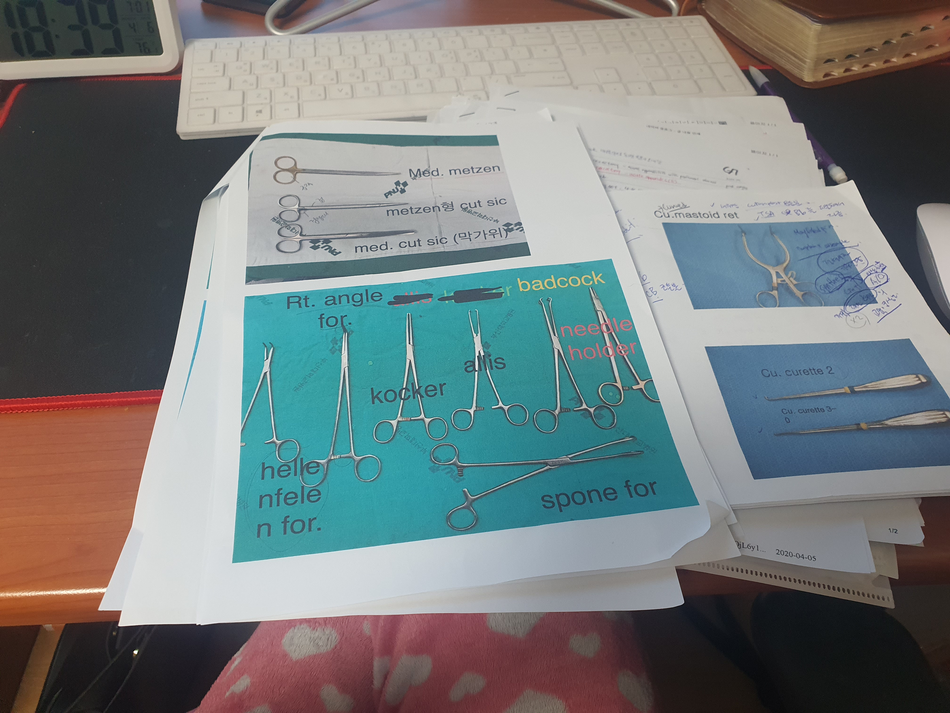 나는 요즘 수술을 옵져베이션(관찰)&스크럽 (방장과 방원 선생님의 지도하에) 하면서 퇴근해서는 수술 기구와 수술 프로시저(procedure, 수술 과정/수술방법) 공부를 하면서 보내고 있다.